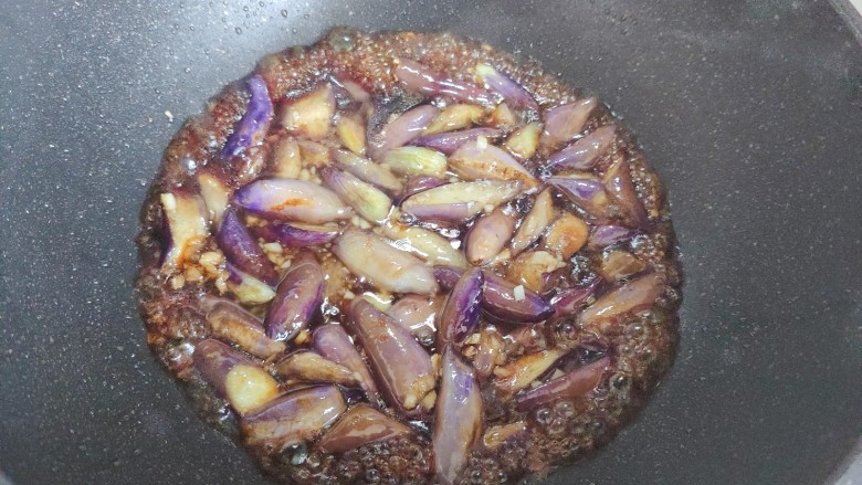 18. 转大火,翻炒至茄子稍稍变软