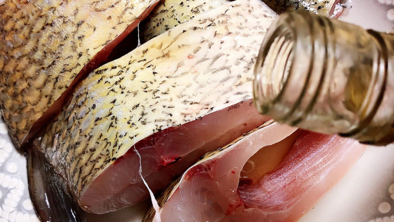 4. 将调料均匀涂抹在鱼块四周,腌制半小时。