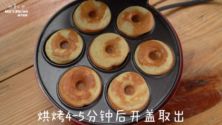 6. 小红锅预热完成后,刷上玉米油,舀入面糊,盖上上盖,烘烤4-5分钟后开盖取出,置于晾架晾凉。
