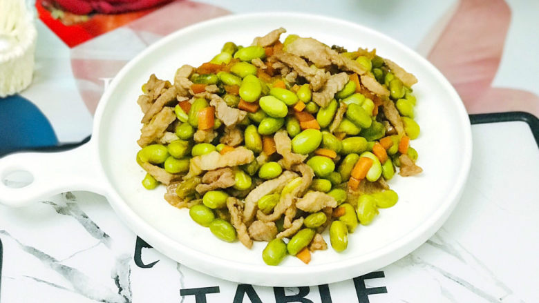 毛豆富含钙质,可以作为补钙的佳品,用毛豆炒肉丝,可以保证一天的钙和蛋白质,老少皆宜,美味可口。
