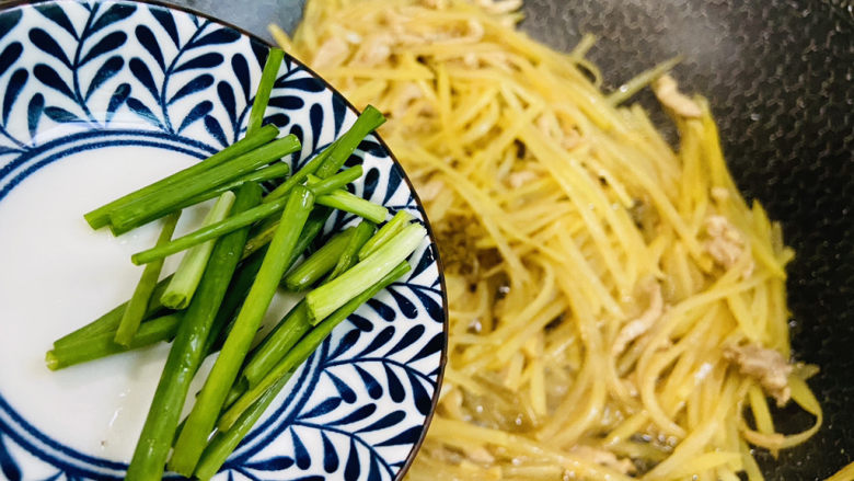 3. 土豆擦丝,放入水中清洗两三遍,去掉淀粉。沥干水分备用