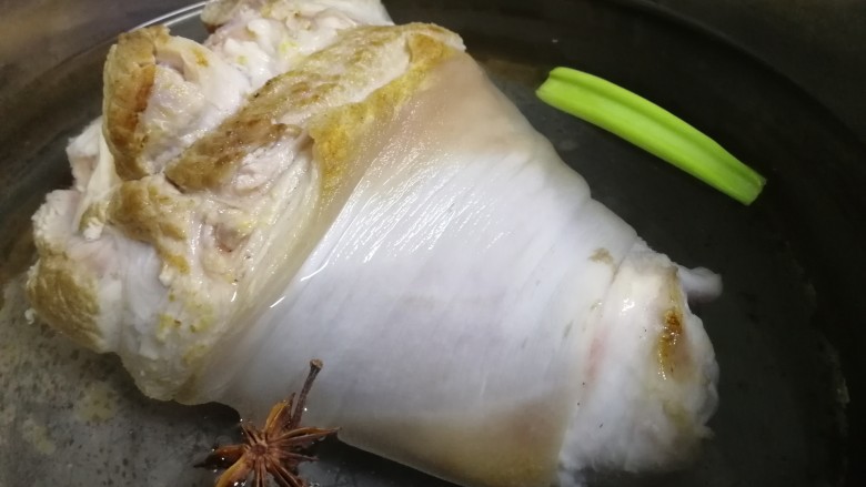 18. 把汤汁倒入炒锅加1小勺淀粉勾流水芡,淋在肘子上即可。肉烂胶粘,肥而不腻,瘦而不柴。