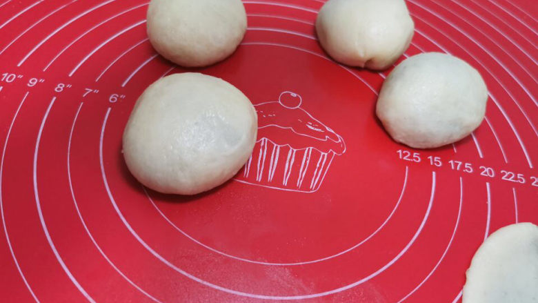 19. 紫薯蒸熟,压成泥,加糖,搓成30克小剂子,绿豆仁做法相同