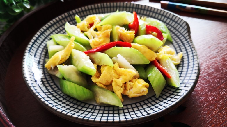 - 丝瓜焯水时放适量的盐和油,是为了保证丝瓜翠绿不发黑。鸡蛋里滴入几滴料酒是为了去除鸡蛋的腥味,而且炒出来的鸡蛋膨松口感好。