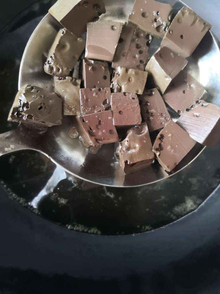 11. 锅中放入清水再滴几滴料酒烧开后放入切好的鸭血焯一下水