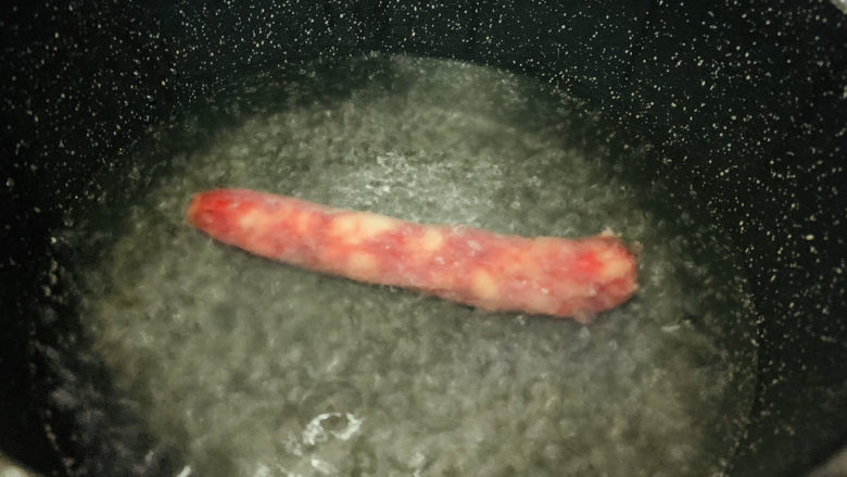 5. 锅加水烧开,放入腊肉,煮一会