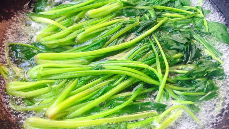 2. 菠菜摘好洗净放入开水中焯水切记时间不易过长