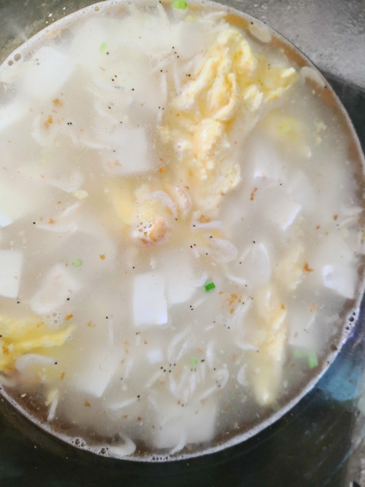 - 鸡蛋用油炒一下和用开水是此汤奶白的关键。豆腐焯水去除豆腥味。