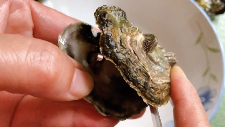 2. 将生蚝的外壳洗刷干净之后,用开蚝器将生蚝打开