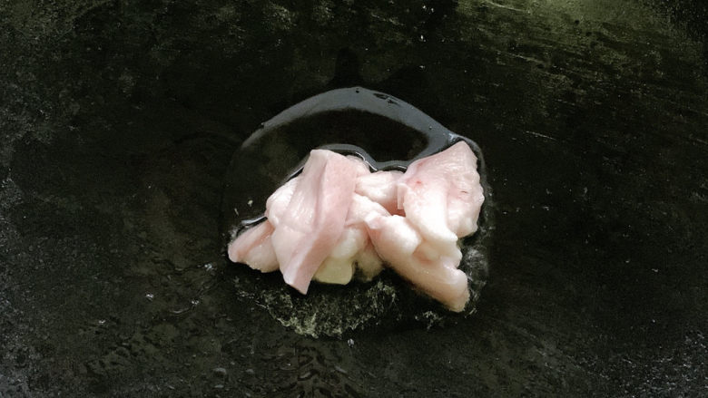 3. 肥肉切片或切丝备用,一会下锅煸炒会大大增香