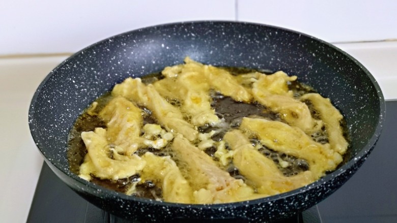 11. 待油温再次生高时,进行复炸一次,时间不要过长,30秒左右立即捞出,口感更酥脆。