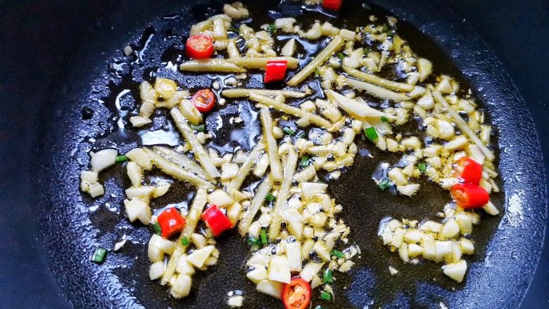 10. 另起锅放入葱姜蒜小米辣爆香,