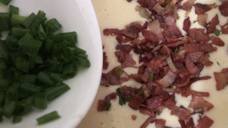12. 把葱花也加进去,再加入些盐、生抽、油搅匀