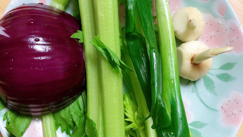 8. 锅中烧开水,焯一下西芹。