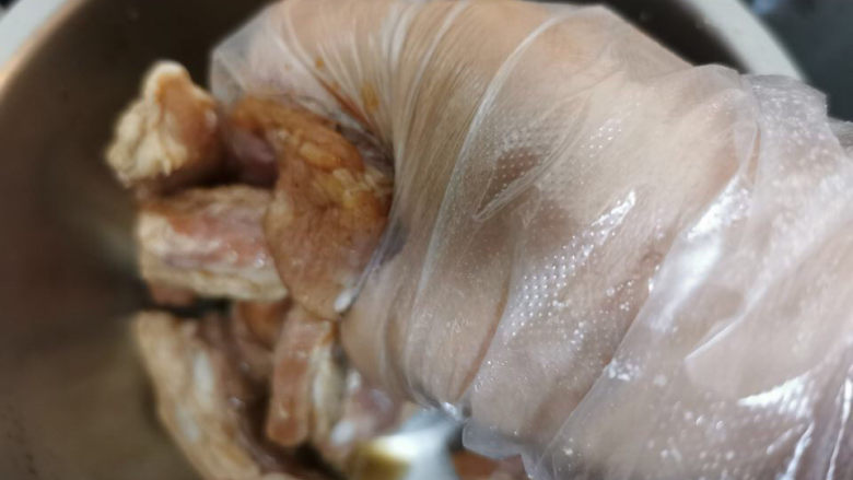 7. 生抽,糖,胡椒粉,料酒拌匀为腌料