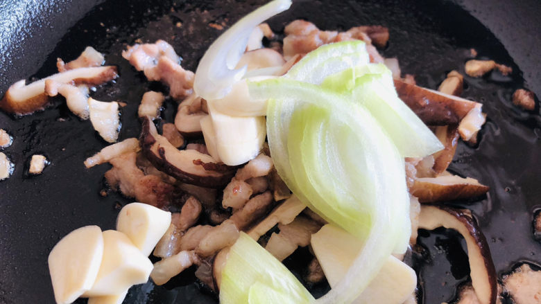 8. 热锅冷油,倒入切好的肉末快速翻炒均匀,煸出多余油脂。
