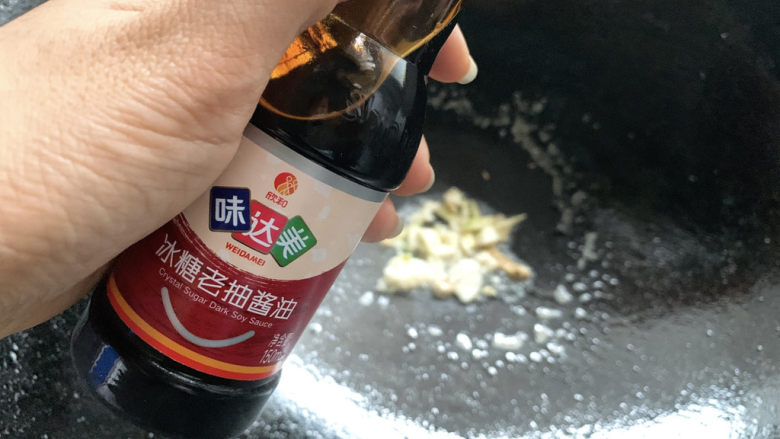 8. 热油锅加入姜丝,蒜沫爆炒出香味。
