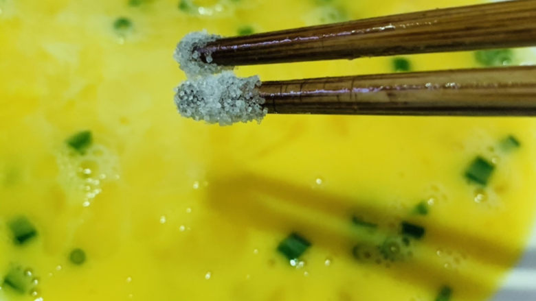 8. 筷子蘸点盐,这样打蛋液比较容易凝固