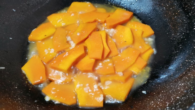 - 煮老南瓜不能总在翻,前后翻一遍就行了,不然容易散掉了
