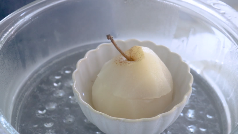 10. 将雪梨放入碗中,隔水蒸一个半小时分钟即可