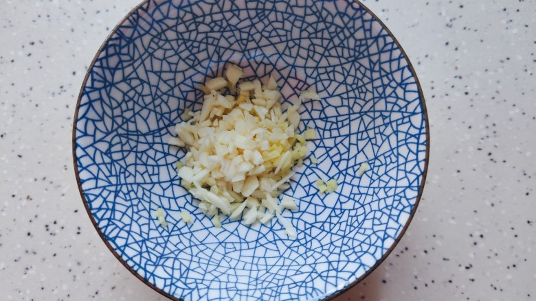 4. 小葱洗净之后切碎,一半与姜蒜放一起,一半留用