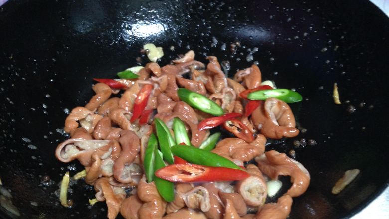 对于肥肠,有点怕肥肠奇特的味道和高胆固醇的含量。用麻椒和辣椒来炒,加入米醋和料酒去腥、白糖提鲜,最后就是很美味的了。