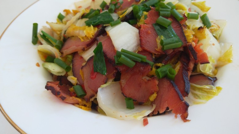 辣白菜五花肉,煸炒稍微干一点倒入蒜末。
