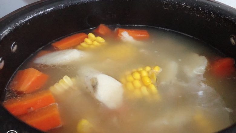 14. 美味的山药猪骨汤就完成了。加了玉米红萝卜特别清甜。