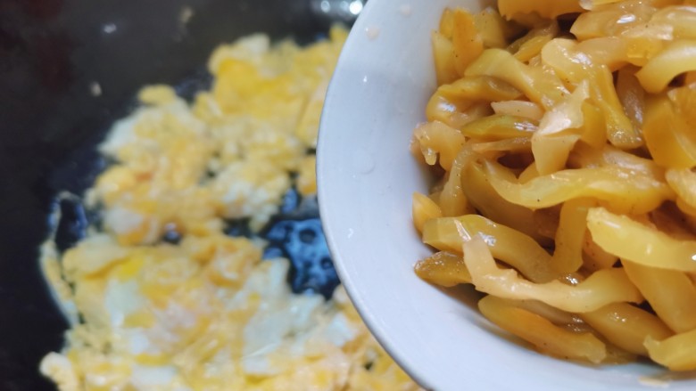 榨菜炒鸡蛋,食材,做法都简单,关键非常的下饭,盛盘后,马上光盘的节奏了