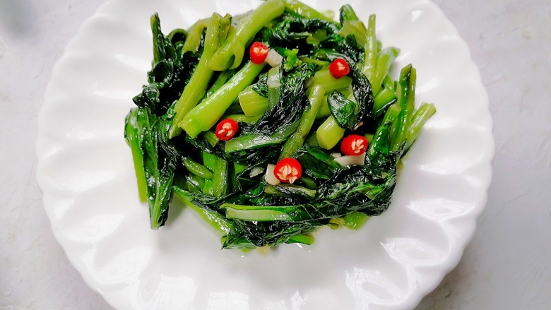 15. 拍上成品图,一道清爽又美味的清炒菜心就完成了。