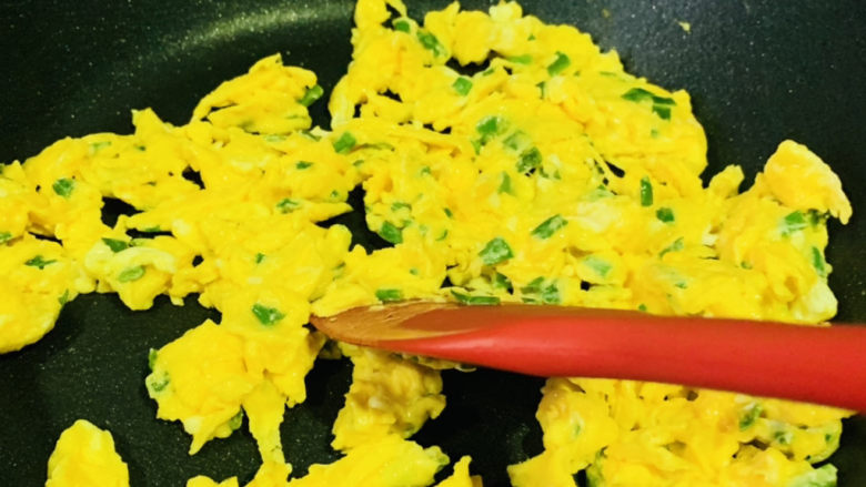 14. 鸡蛋凝固,炒散,加入炒好的料汁