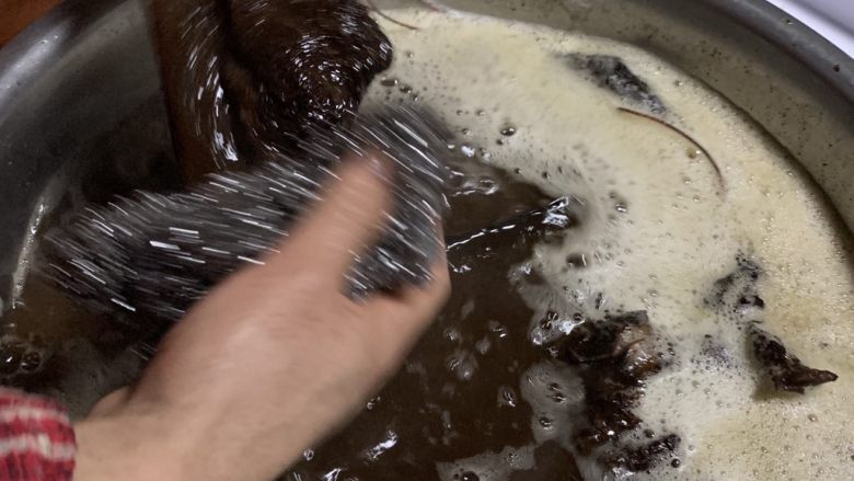 10. 最后皮朝下煮40分钟,水煮的时候了加入葱段和姜片。