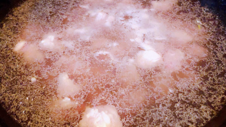 3. 锅中烧开水放入羊肉块再放入料酒焯水去除多余的油脂和杂质