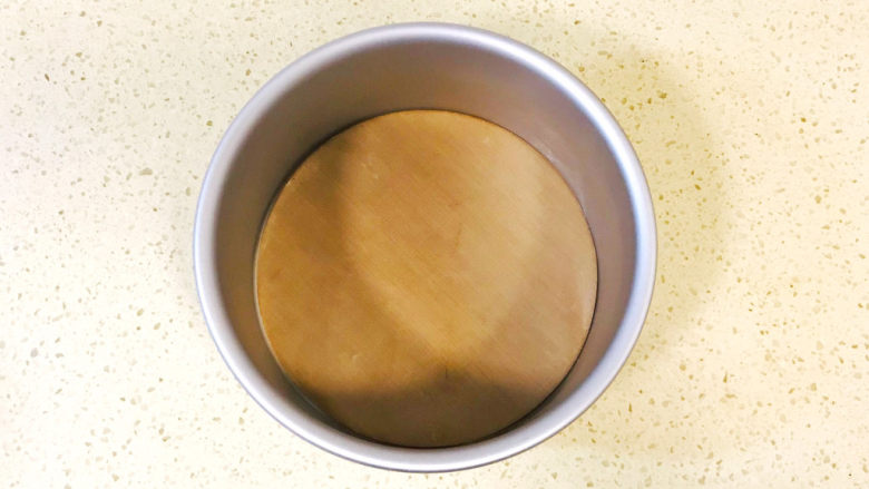 1. 准备好六寸的蛋糕模具,底下垫上烘焙纸,四周不需要垫