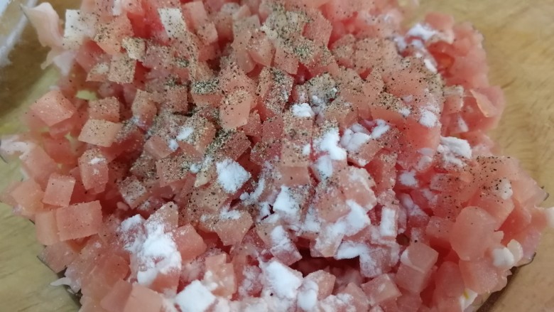 5. 加适量黑胡椒粉和淀粉,拌匀。