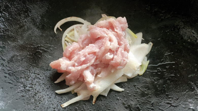 13. 然后炒至猪肉丝熟透,撒葱花备用