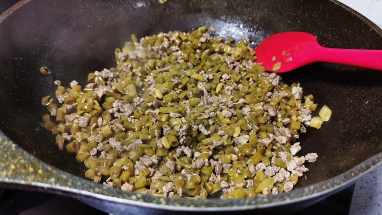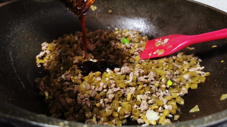 - 3、炒至的过程尽量把豇豆煸炒的干一些,让肉末吸收豇豆里的味道。