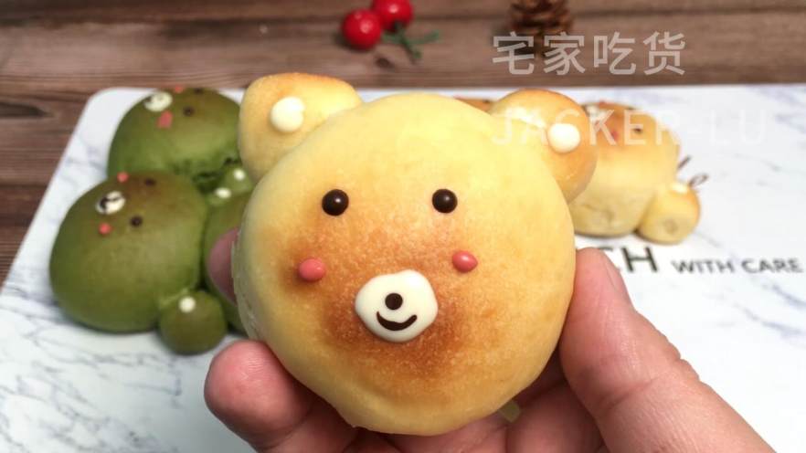 可爱小熊面包,萌萌的,奶香浓郁,柔软香甜,一次发酵节约时间。