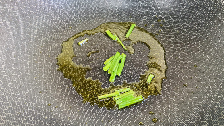 5. 起油锅放入葱段炒出香味,然后将葱段捞出