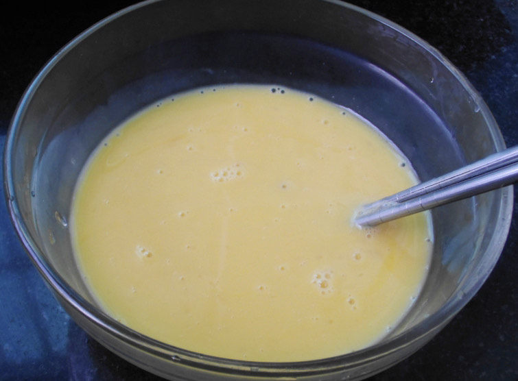 9. 鸡蛋打成鸡蛋液,搅打均匀。