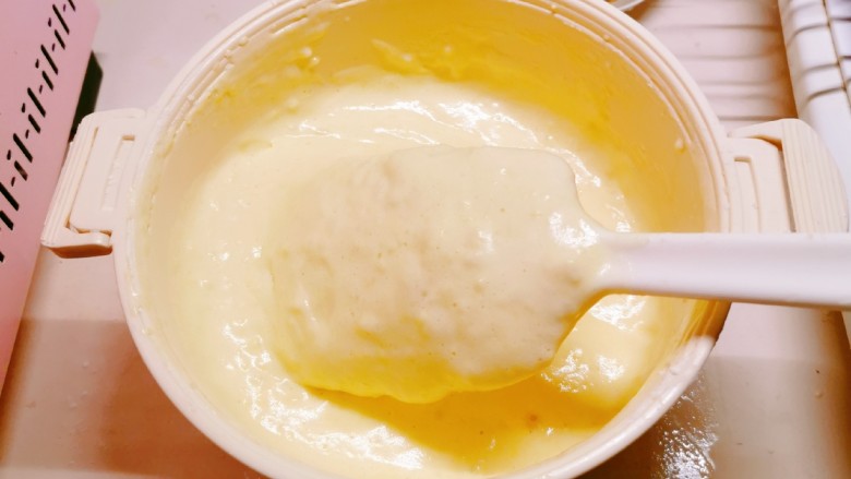 6. 提起打蛋器有小弯勾,且纹路不易消失,表明鸡蛋已打发好了。