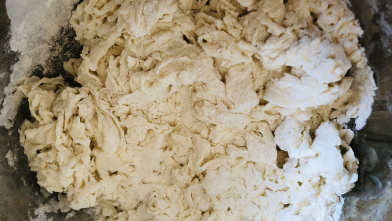 4. 分次加入200克清水,先把面粉搅拌成棉絮状。 🙇🏻♀️不同品牌的面粉吸水性不同所以清水一定要分次加入。