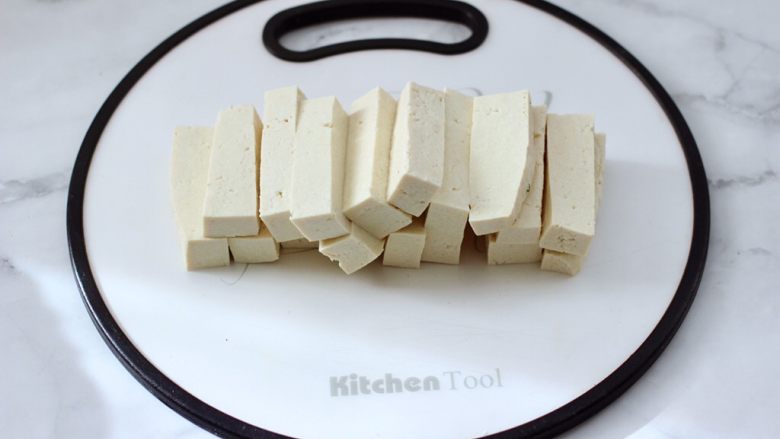 2. 北豆腐用刀切成块。