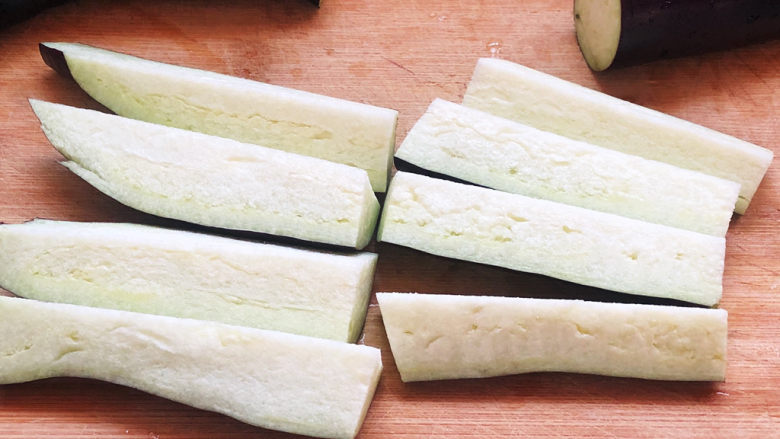 5. 调好味道的肉馅,在茄子的中间围一圈