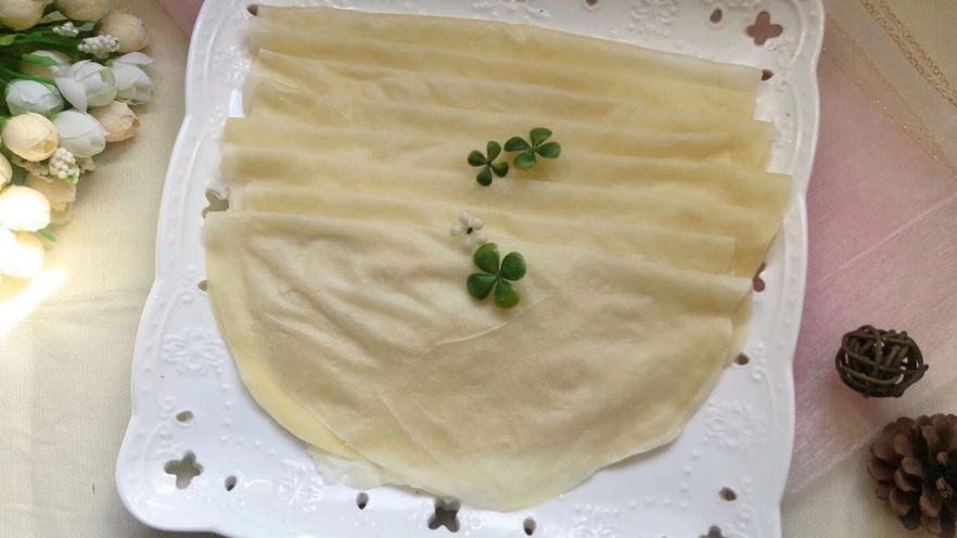 21. 蒸好后趁热把这一叠皮子分别撕开。