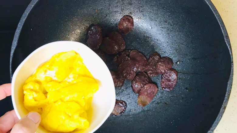 17. 翻炒均匀,美味的腊肠炒蛋就做好了