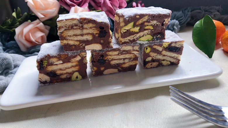 17. 放入饼干、坚果和葡萄干。