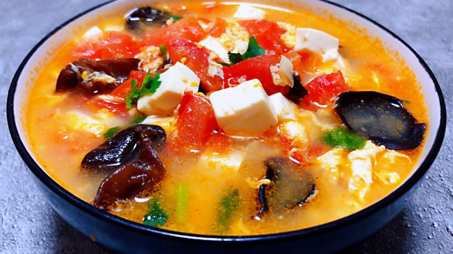 11. 美味可口的西红柿豆腐木耳蛋花汤装入容器中就大功告成了
