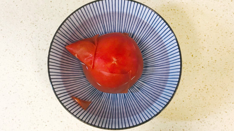 4. 西红柿洗净,浇上开水烫一下