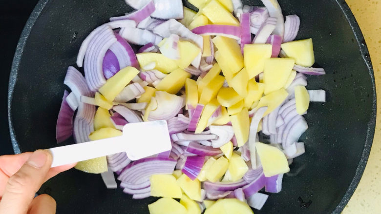 - 土豆富含淀粉,炒制过程中,需要加少许清水,以防糊锅。